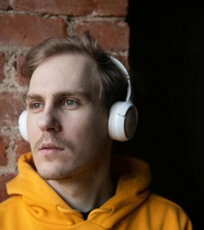 A person with curly hair is having their hair adjusted by another person. The setting appears intimate, possibly a hair salon or a styling session. The image is in black and white, highlighting textures and contrasts.